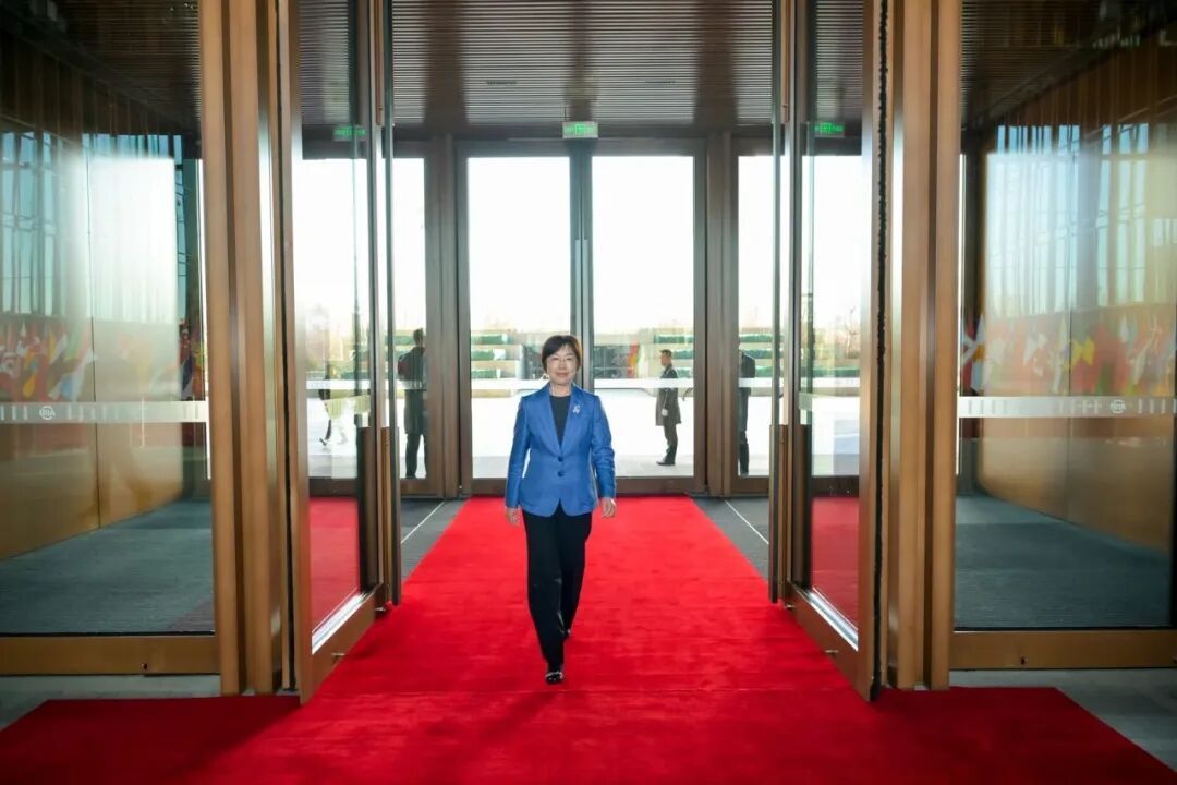 邹加怡走进亚投行总部大楼。图源:亚投行微信公众号